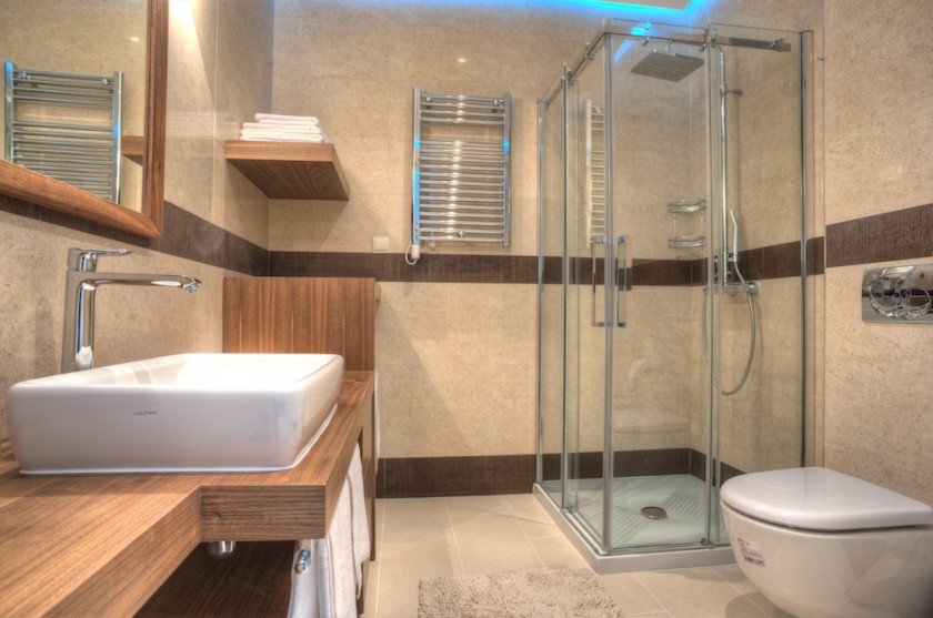 Kupatilo ima tuš kabinu, lavabo, WC, i bide, mašinu za veš.