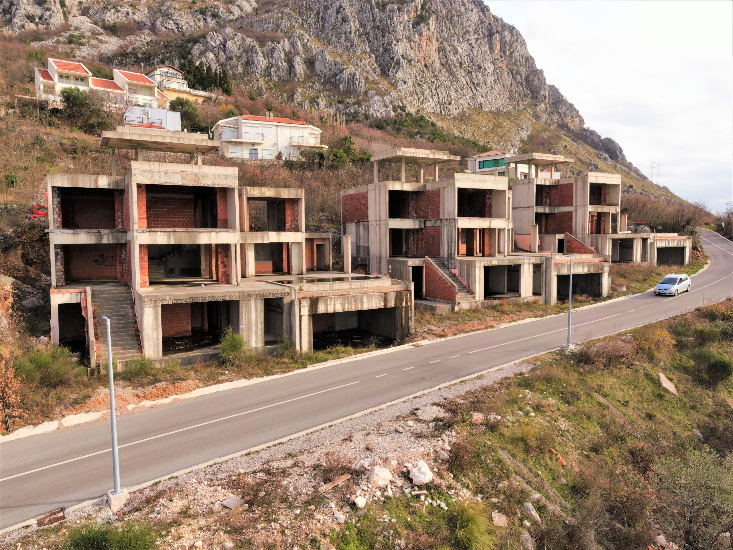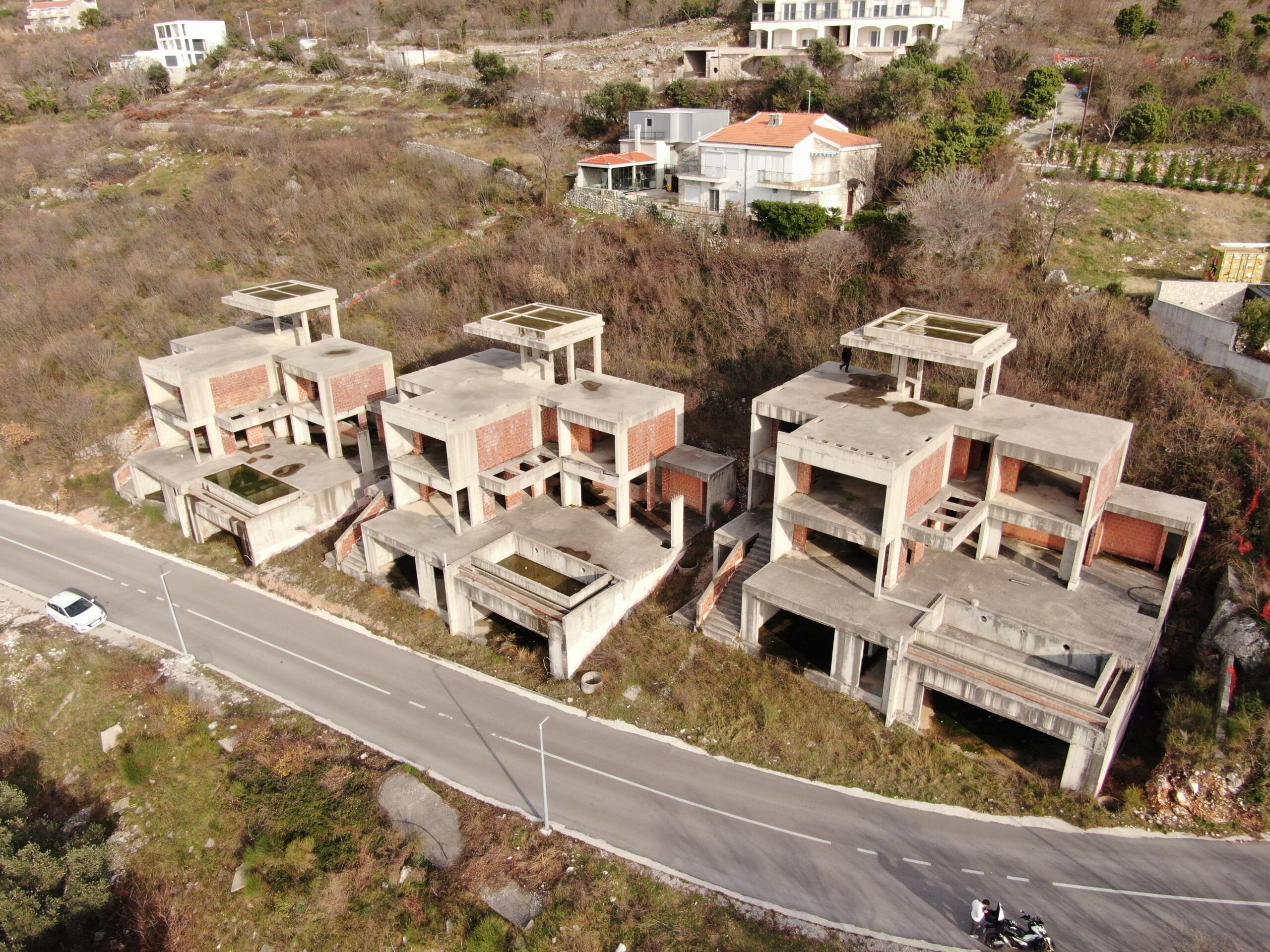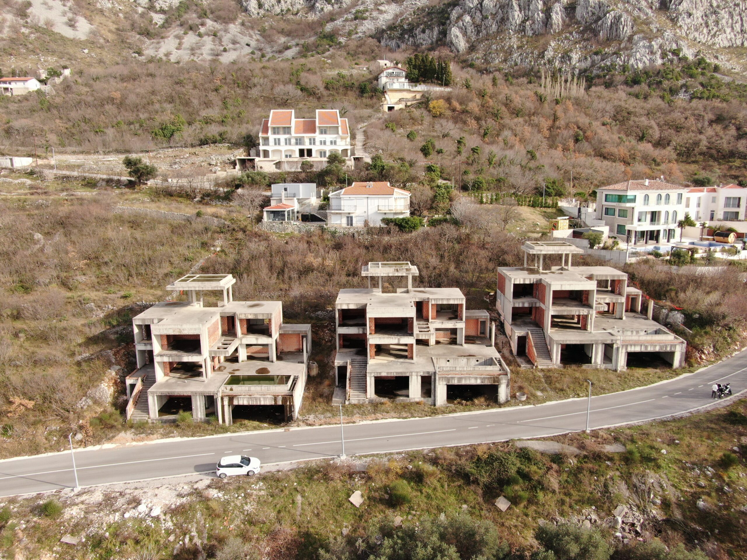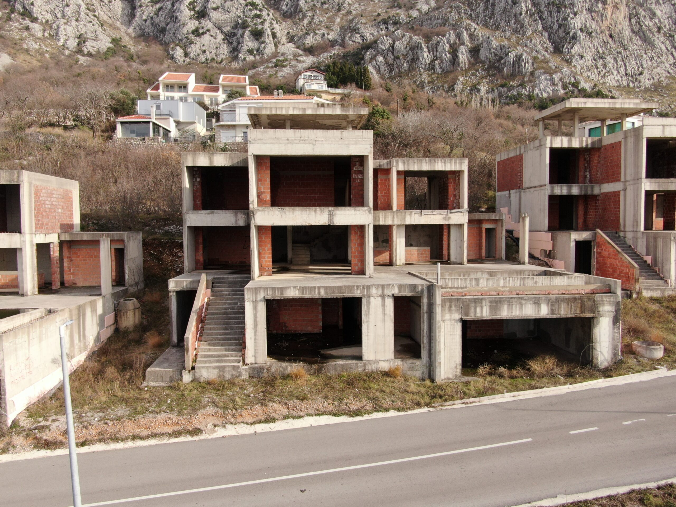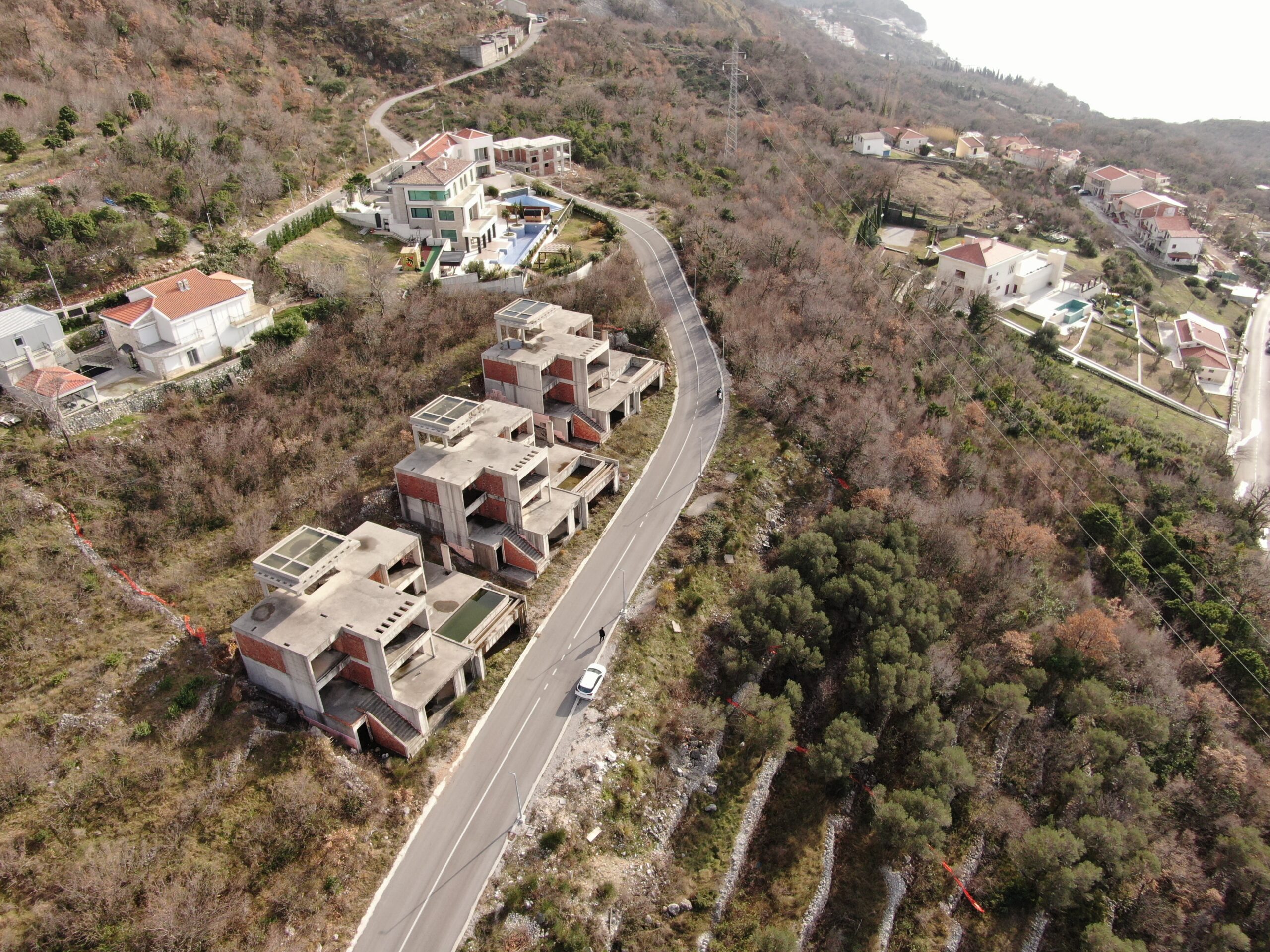 U sve popularnijem naselju Tudorovići, na prirodnom uzvišenju iznad Budve koje garantuje neometan panoramski pogled na more i okruženje, na prodaju kompleks od tri identične luksuzne vile. Vile su trenutno u fazi izgradnje (završeni grubi radovi i u toku je ugradnja bravarije), što budućim vlasnicima pruža mogućnost odabira završnih materijala i enterijera prema sopstvenim željama i standardima.