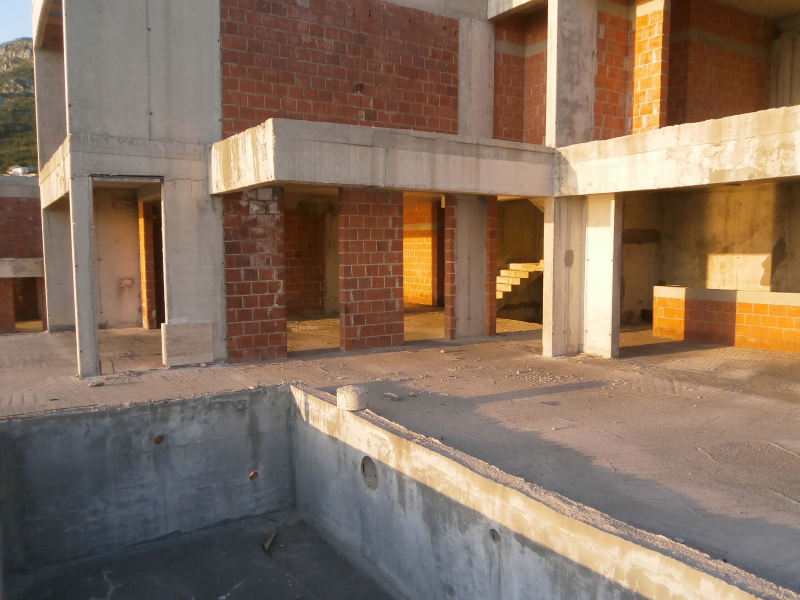- Prvi sprat: Na 2 etaži nalazi se dnevni boravak, trpazerija, kuhinja, dodatna prostorija koja se može koristiti kao sauna, spoljni tuševi, radni prostor isl. Iz dnevnog boravka se izlazi na terasu sa bazenom.
