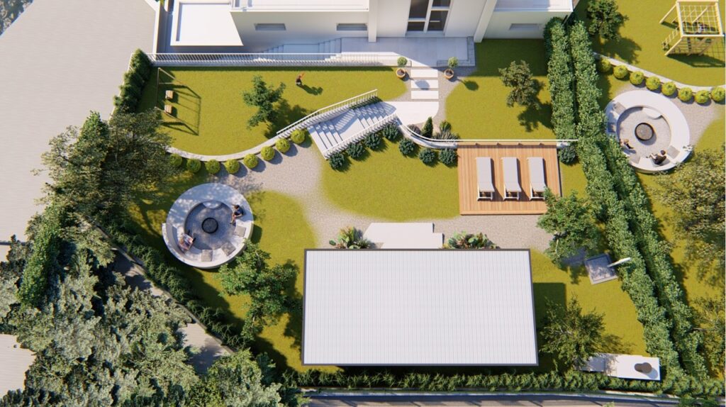 - Dvoršni prostor je projektovan kao mjesto za odmor sa uredjenim kutkom za dječije igralište.