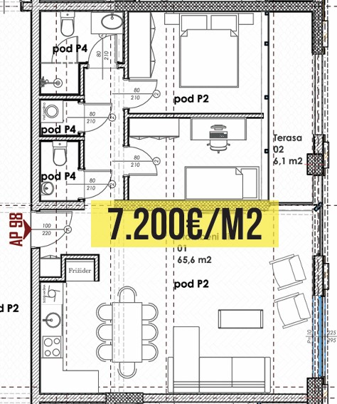 Budva – Stanovi na prodaju – Dvosoban stan – 71.57m2 – 6. sprat – #AP98