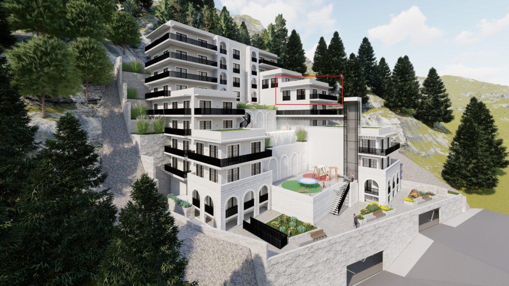 Montenegrina Residence – Apartman sa dve spavaće sobe – 102.46m2 – 5. sprat – Centralni pogled – #SU6-D1